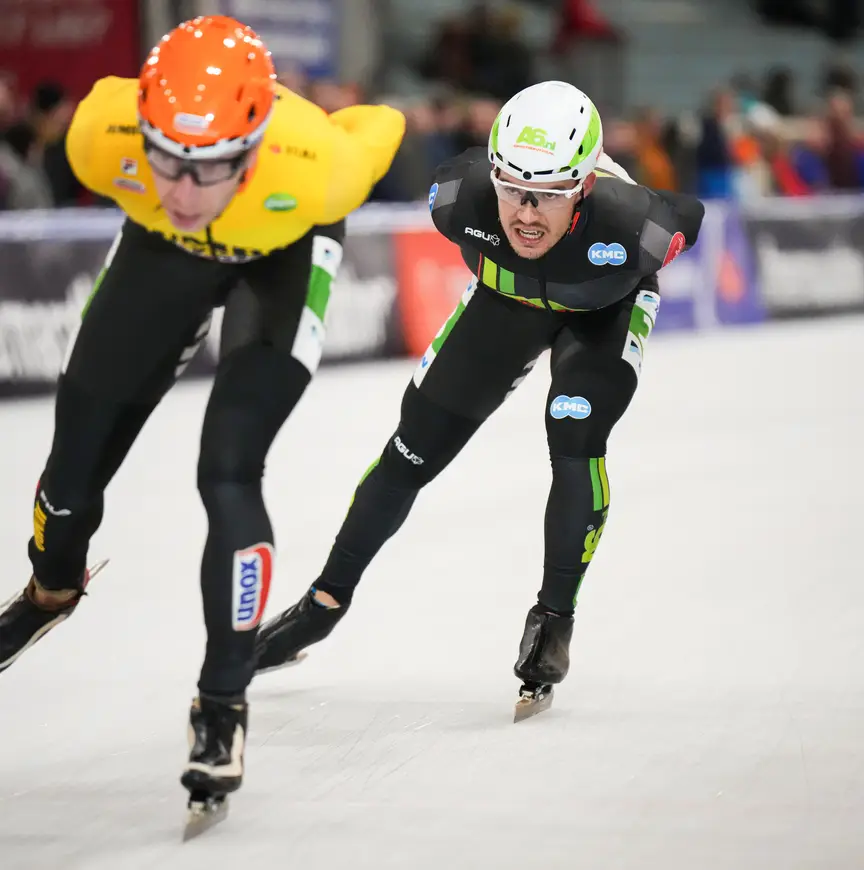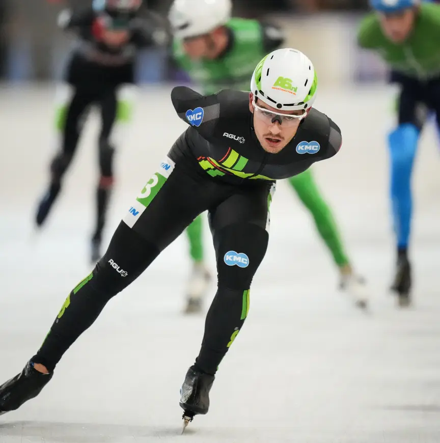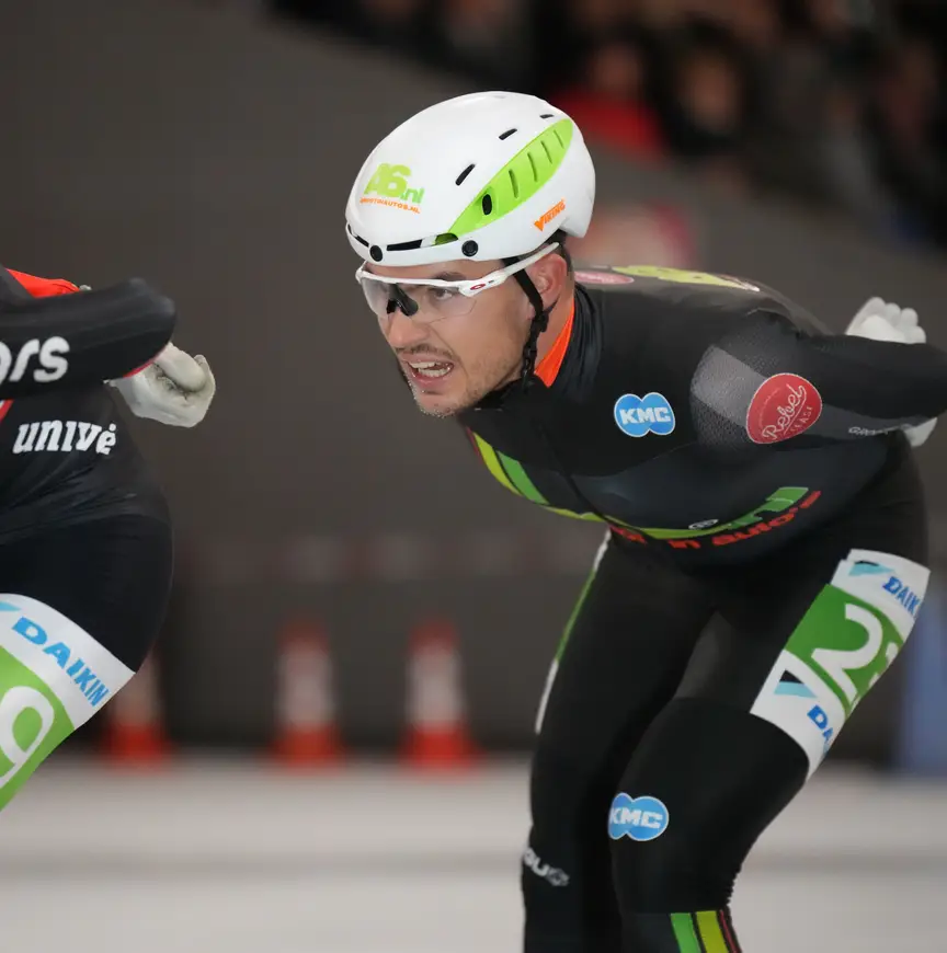 Aan doorzettingsvermogen zal het niet ontbreken. In januari van dit jaar baarde Bravo opzien door als derde marathonman met een B-nummer te finishen in het Open NK op de Weissensee. “Dat was mijn eerste kennismaking met natuurijs. Had geen idee wat ik moest verwachten van zo’n race, al snapte ik dat het heel zwaar zou worden. Dat klopte, het werd een van mijn moeilijkste wedstrijden ooit, waarin ik in het tweede peloton op de dertigste plaats eindigde. Schaatsen onder dergelijke omstandigheden bleek me goed te liggen. Het benadert meer de manier van skeeleren, met een kortere slag en minder diep voorovergebogen staan. Helaas crashte ik in de tweede lange tocht en kon ik niet doorgaan. De Alternatieve Elfstedentocht was na 130 of 140 kilometer voorbij. Die wedstrijd liep ook lekker; ik kon zelfs wat werk verrichten voor mijn ploegmakkers. Ik denk dat Klasina en Henk-Jan (de eigenaren van de ploeg, red.) mijn potentieel toen hebben gezien. Hopelijk kan ik in januari opnieuw naar de Weissensee, want ik ben van plan nog veel beter te presteren.”