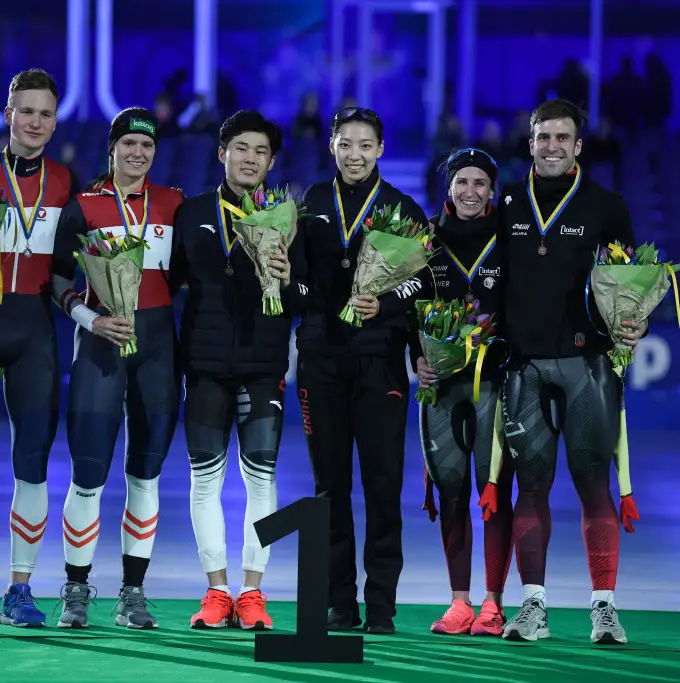 Li en Kahanbai noteerden een tijd van 2.58,54 en bleven daarmee voor Vanessa Herzog en Gabriel Odor. Het Oostenrijkse tweetal finishte als tweede in 2.58,99. Ivanie Blondin en Antoine Gélinas-Beaulieu uit Canada pakten de bronzen medaille (3.00,21). De 19-jarige Odor denkt dat het nieuwe teamonderdeel een mooie toekomst heeft in het schaatsen. "Je ziet in bijna elke sport dat er een mixed event is. Het zou perfect zijn voor schaatsen als er ook gemengde competitie is", meent Odor.