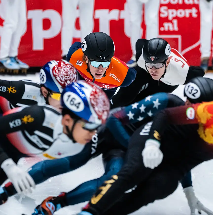“Dat is een kwestie van ervaring. Ik kijk heel erg uit naar het WK in Korea, echt een shorttrackland. De jongens tegen wie ik nu race zijn altijd mijn voorbeelden geweest. In deze wedstrijd moest ik het opnemen tegen drie Koreanen, maar ik heb er liever vier om tegen te racen. Die gasten zijn zo geweldig. De meeste landen rijden op kracht en snelheid en Korea is tactisch zo waanzinnig sterk bezig, niet normaal. Ze zetten je soms zo stil zonder dat je er erg in hebt.” En over de winnaar Park: “Die wint, geloof ik, vijf keer de 1500 meter op een rij. De tweede in de rituitslag is zeventien, maar nu al belachelijk goed. Ik kan niet wachten op het WK. Stel je voor dat ik tegen die tijd Park kan te grazen nemen, in het hol van de leeuw… Dan kan ik beter snel mijn spullen pakken en wegwezen, haha!”