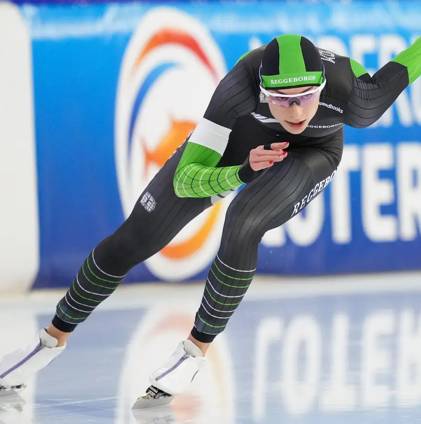 Met de snelste tijd in de eerste omloop (37,48) en de tweede tijd in de tweede omloop (37,64) werd de sprintster van Reggeborgh na 2021 voor de tweede keer Nederlandse kampioene op de 500 meter. “Het was heel cool om met de Nederlandse vlag een ereronde te maken. Toen ik voor het eerst de nationale titel pakte, was het midden in de coronapandemie, dus toen was er niemand. Gaaf om het nu met zoveel mensen te kunnen delen. Mijn doel is om tijdens het WK een 36’er te rijden. Er is niets mooier dan zo’n toernooi te rijden in een vol Thialf. Het is onze thuisbaan. Ik krijg daar enorm veel energie van.”