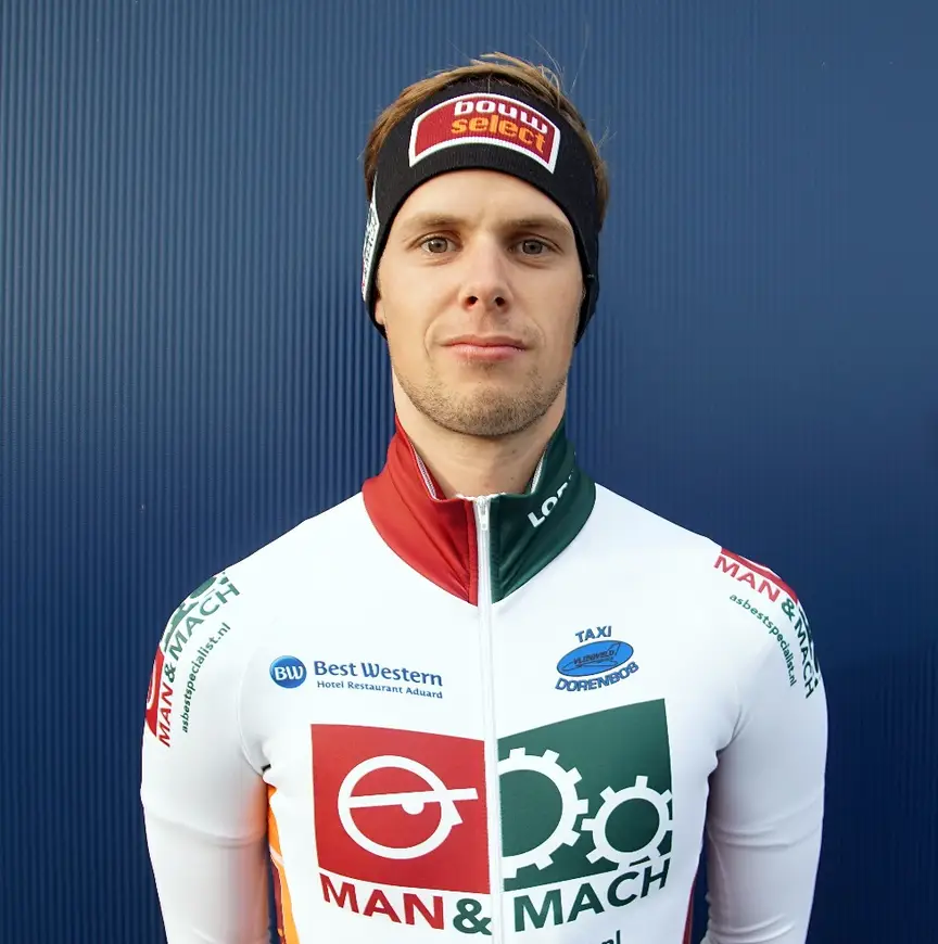 Negen seizoenen maakte Marco van der Tuin deel uit van het marathonpeloton. Het hadden er net zo goed acht kunnen zijn. “Na mijn tijd bij Okay wilde ik graag de stap zetten naar een topploeg”, vertelt de Fries. “Een stap naar Jumbo-Visma, Reggeborgh of A-ware zag ik wel zitten, maar dat bleef uit. Ik raakte daardoor een beetje tussen wal en schip.” Van der Tuin vroeg zich af of hij überhaupt door wilde, totdat hij samen met Bart Mol in contact kwam met Henk-Jan Meijer van de A6-ploeg. “Hij zou er eigenlijk mee stoppen, maar toen wij hem spraken was hij overstag om door te gaan. En daardoor besloten wij er ook nog eens voor te gaan.” Het werd een internationaal collectief met een Fries, een West-Fries, een Nieuw-Zeelander (Peter Michael) en een Portugees (Miguel Bravo). “Een leuke outsidersploeg”, noemt Van der Tuin het. Het viertal kwam vooral op natuurijs goed uit de voeten met een podiumplek voor Michael in Winterswijk.