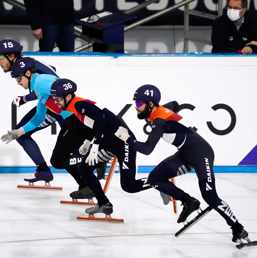 De uitslagen van alle coronatesten waren ditmaal negatief en dus konden de shorttrackers uit Nederland, België, Frankrijk en de eenlingen uit Israël en Letland allemaal van start. Ook Hongarije, Rusland en Italië hadden een uitnodiging gekregen, maar moesten verstek laten gaan door ziektegevallen en een reisverbod. "En de Italianen hebben al zes weken niet getraind, want ze mochten niets", zegt Knegt. "Ik snap dat je dan die keuze maakt om niet te komen."