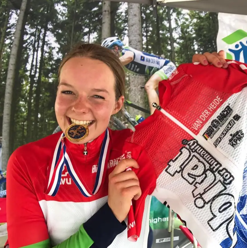 "Ik ben nu een week thuis en dan komt het Europees kampioenschap in Italië eraan daar gaan we met de Nationale selectie heen. Het EK en WK rijd ik nog wel in de U23 en daar wil ik voor het podium meedoen. Het zou heel mooi zijn als ik dat haal.