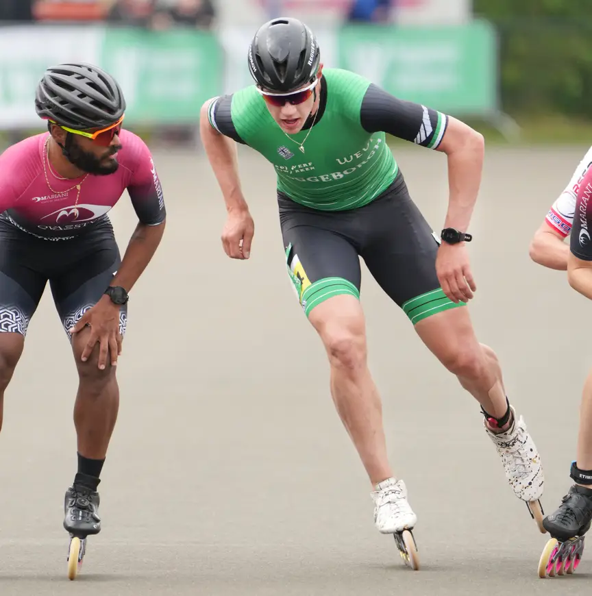 Bij de mannen bleef Bart Hoolwerf tot het laatste overeind in de afvalkoers met Indra Médard en Alex Cujavante. Die laatste ging er vandoor met de overwinning. “Het was veel vechten”, stelt Hoolwerf na afloop. “Dat hoort wel een beetje bij dit onderdeel en voor mij is het ook de reden waarom ik weer internationale skeelerwedstrijden wilde rijden. Voor de mass start is dat gevecht goed. Ik moet niet aan de risico’s denken en vechten voor m’n plek. Dat lukte vandaag best goed.”