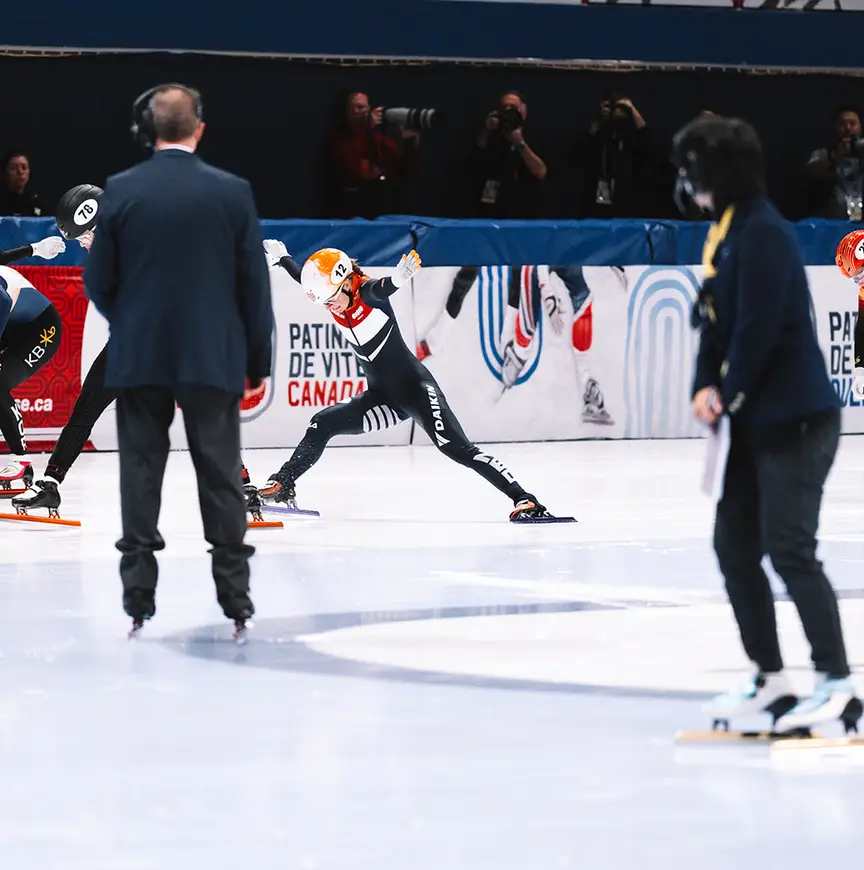 Penalty’s horen bij shorttrack als een puck in het ijshockeyspel, maar de straf die de meest succesvolle rijdster van TeamNL in Montréal zaterdag krijgt na een vermeende armblok bij nota bene ploeggenote Selma Poutsma, lijkt wel heel gemakkelijk uitgedeeld. Lang nadat de Maurice-Richard Arena is leeggestroomd, loopt de bondscoach van Nederland zichtbaar met zijn ziel onder de arm. Het verzoek of er nog even kan worden nagepraat, hoeft niet eens te worden vervolgd met een vraag. Kerstholt begint zelf te spuien, en het is logisch, na een op veel meer fronten bewogen middagje, dat de discutabele maatregel tegen Velzeboer als eerste aan de orde komt.