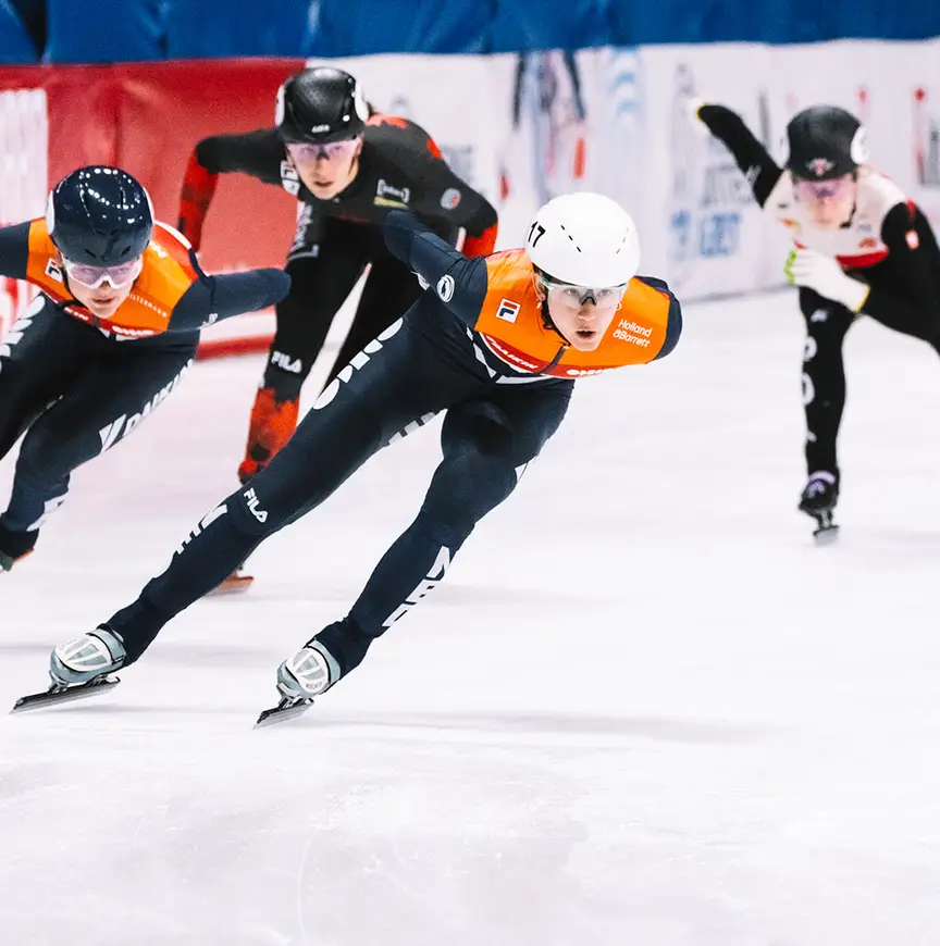 “We hebben het over de twee snelste vrouwen van de wereld in deze sport, hè, dat is toch duidelijk. Nou, als die twee om de plaatsen een en twee aan het vechten zijn, kan er altijd wat gebeuren.” Met stemverheffing: “Maar ik zie op de video niet dat ze elkaar raken. Ik kan het gewoon niet vinden in die beelden. Nou, dan ga ik vragen stellen bij de ISU. Je snapt dat ze zo’n uitslag niet veranderen. Zo werkt dat niet. Je kunt je beklag doen en dan krijg je als antwoord: ‘Ja, bedankt, leuk van geleerd’. Daar kopen we niks voor.”