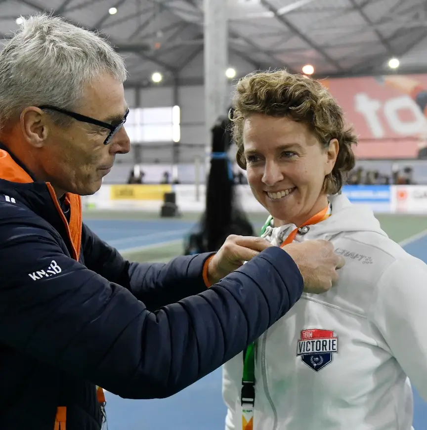 Renate Groenewold werd onlangs bestolen van alle gouden medailles die in haar rijke loopbaan won. Ook de gouden schaatsspeld van de KNSB werd ontvreemd. Maar die laatste heeft ze inmiddels weer terug. Althans, ze kreeg een nieuw exemplaar van de schaatsbond.
