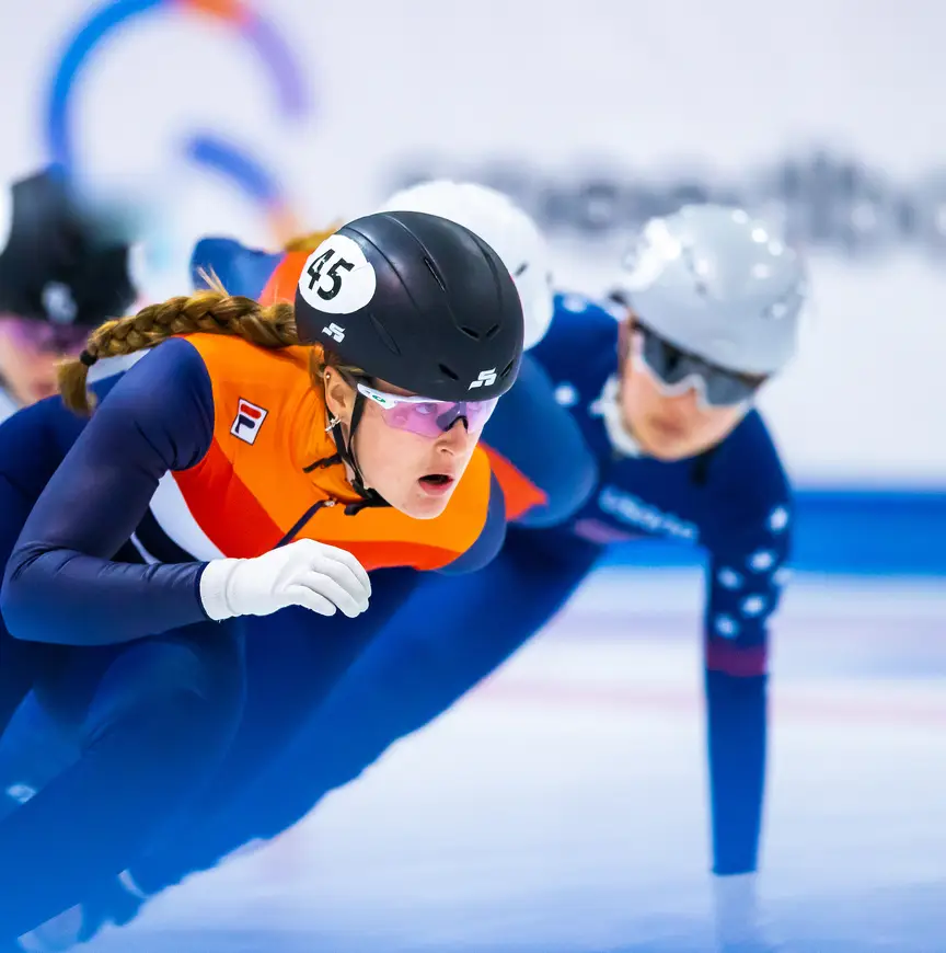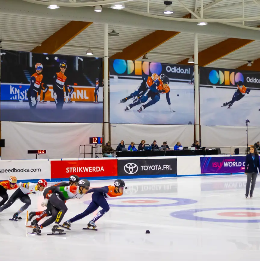 Het Leeuwarder decor van de ISU Junior World Cup Shorttrack is prachtig met aan weerszijden van de baan hangen gigantische foto’s van de toprijders uit de Nationale Training Selectie (NTS). Ze kijken neer op hun jonge landgenoten die zich dit weekend met internationale toprijders van hun leeftijd meten: De Suzanne Schulting, Xandra Velzeboer en Sjinkie Knegt van de toekomst.