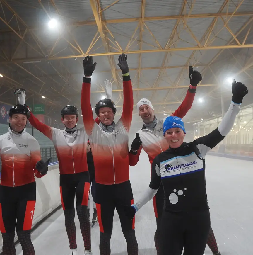 Ze had er met een scherp oog voor marketing al goed over nagedacht, want binnen een jaar moest ze zichzelf als eenmanszaak afremmen in haar dadendrang. “Ik kreeg zoveel werk door de sponsoring, dat ik niet meer klussen aan kon. Weet je wat het is? Er rijden veel ondernemers op het ijs. Die hebben personeel en daaruit vloeit meestal ‘gedoe’ voort dat ze graag opgelost willen hebben. Ik knoop onder het schaatsen makkelijk een praatje aan en dan worden de arbeidsrechtelijke uitdagingen voorgelegd. Het was overigens niet mijn hoofddoel hoor bij het opzetten van het team. Het leek me heel gaaf een ploeg te hebben die met mijn naam zou rondrijden op de Uithof. Vooral het samen optrekken, elkaar helpen beter te worden én jaarlijks meedoen aan de NK Masters plus het Open NK op de Weissensee waren en zijn de dingen die we nastreven. Oh ja, en als er natuurijs ligt, nemen we gewoon een week vrij om met z’n allen tochten te maken. Schitterend!”