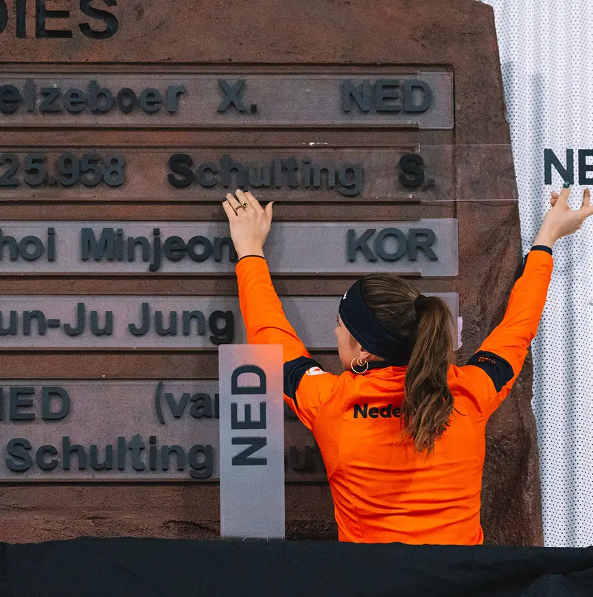 “Ja, tuurlijk, dat zou heel goed kunnen. Als het ijs lekker is en de race snel zal zijn, waarom niet? Maar zondag draait het er vooral om dat ik weer goud win op deze wereldbeker. Dat was op de Spelen ook zo. Toen reed ik in de kwartfinale een wereldrecord waarmee ik heel blij was. Dat zou anders zijn geweest wanneer ik verderop in het toernooi naast de gouden medaille zou hebben gegrepen.”