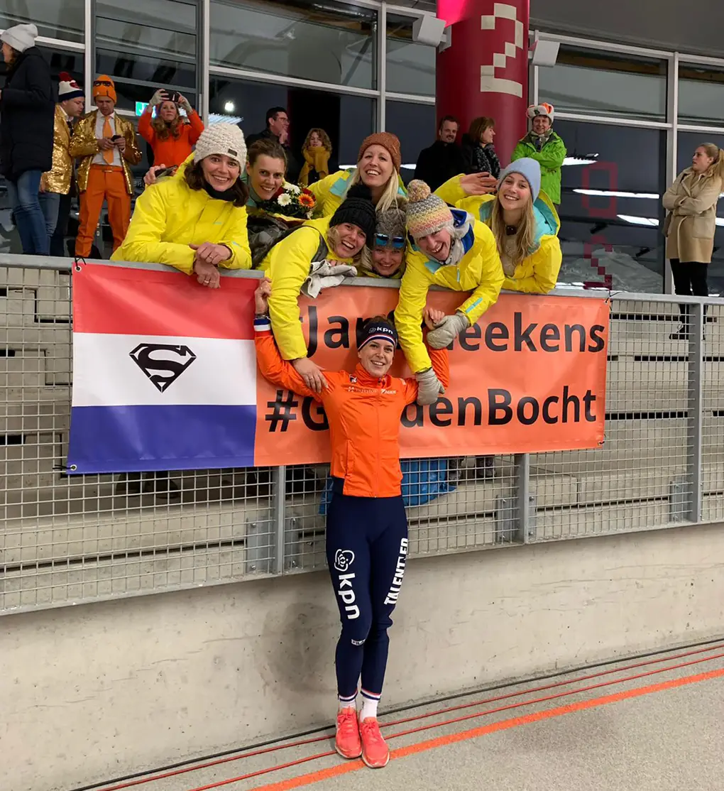 Oud-schaatsster Wieteke Cramer is een van de andere vriendinnen uit Team Nuyt en zat ook vol trots voor de tv. “Ik ben dol op het kijken naar de Olympische Spelen. Nu was het nog specialer, omdat het Ireen haar laatste wedstrijd was. Het viel ons op dat ze heel ontspannen was. In onze app verscheen regelmatig: ‘Jeetje, wat straalt ze!’ We twijfelden er niet aan dat ze er fysiek klaar voor was, maar het totaalplaatje moest kloppen. Op basis van hoe we haar zagen, wisten we dat het zo maar eens kon gebeuren dat ze wederom goud zou halen!”