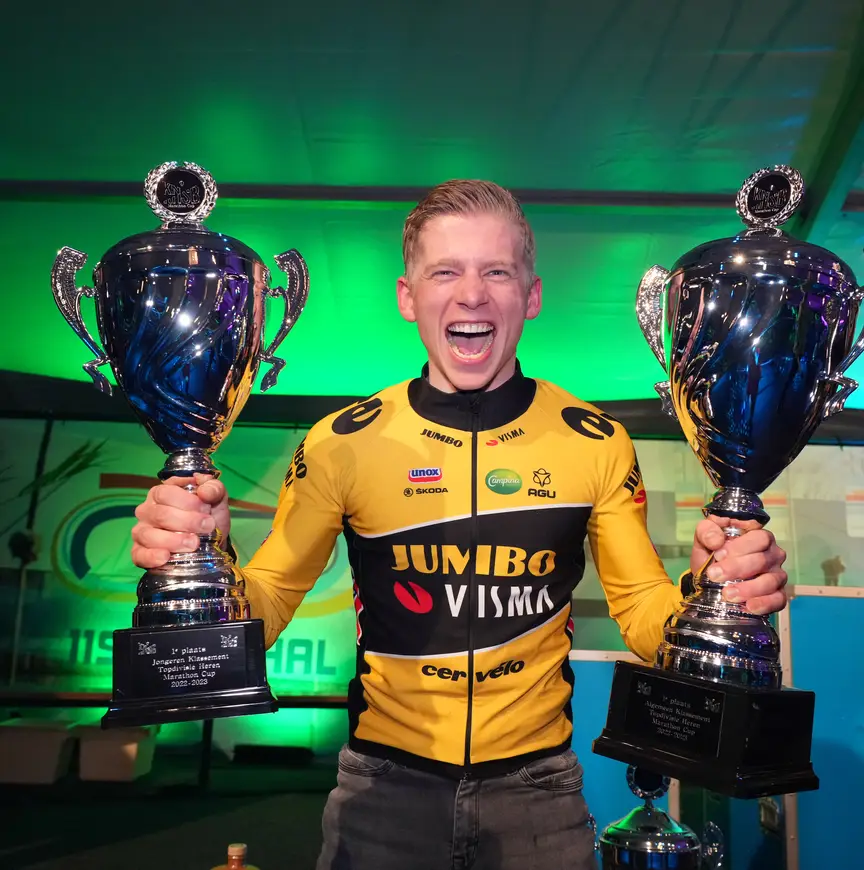 De sprinter van Jumbo-Visma maakt zich geen zorgen over het ontbreken van zijn eindschot. “Het is nog aan het begin van de zomer. Als team maken we momenteel veel uren in de trainingen. Gedurende het seizoen komt die snelheid wel. Ik vind het jammer dat ik Bart niet heb kunnen verslaan, maar ik ben op waarde geklopt en dat moet ik accepteren. Vorig jaar werden we in de eerste vijf à zes wedstrijden steeds achtste of negende. Nu sta ik op het podium en doe ik zelfs al mee om de eerste plaats.”