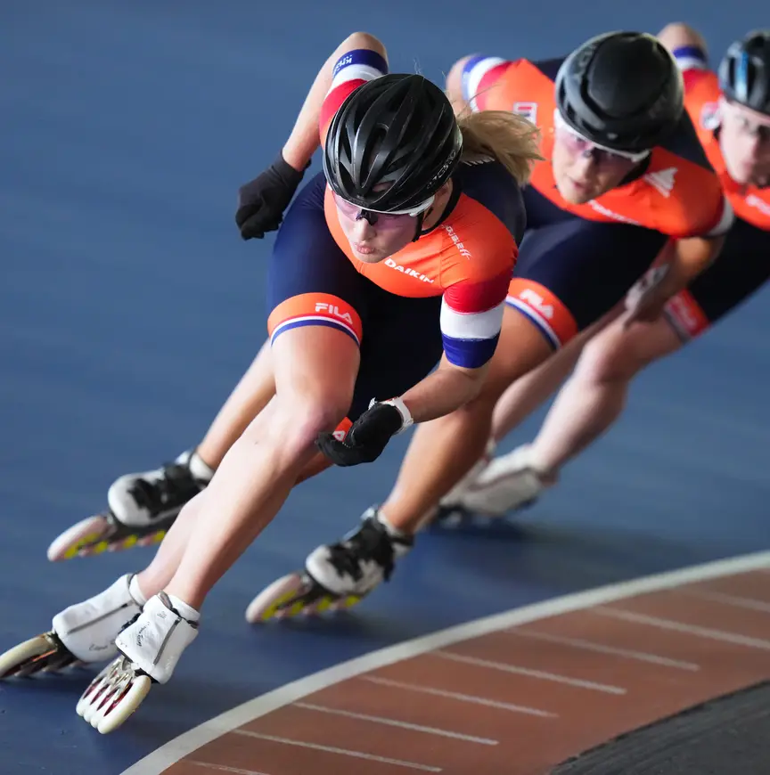 “Ik heb deze problemen al jaren, alleen is het nooit zo kritiek geweest als op het EK. Het is een lastige blessure, omdat die zich opbouwt. Naast de pijn heb ik last van instabiliteit en dat is lastig in de bochten van een piste. Pas na het WK kan ik werken aan een permanente oplossing.” Tot die tijd is het zoeken voor Veen. “Het is niet zo dat ik helemaal niet kan skeeleren, anders had ik vandaag geen wedstrijd gereden. Maar het is een heel dun lijntje. Qua vertrouwen, snelheid en gevoel op de skeelers is het zoeken naar de juiste balans tussen rust en inspanning. Het is onmogelijk om in topvorm te raken. Ik heb er wel alles aan gedaan en heb inmiddels vrede met hoe het is.“