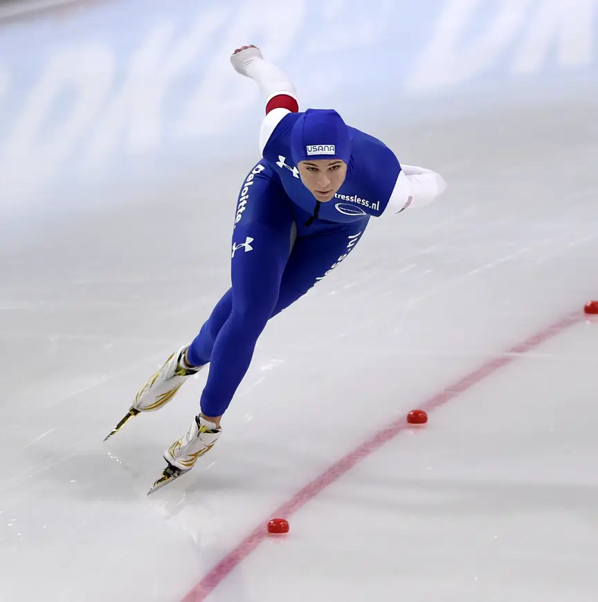 De openingsafstand viel de Amerikaanse mee. Ze hoefde maar een tiende toe te geven op haar landgenote Heather Richardson-Bergsma en werd vijfde in 38,34. Hill: “Ze vond het ongelooflijk dat het gat maar zo klein was, terwijl ze zich zo beroerd voelde.”