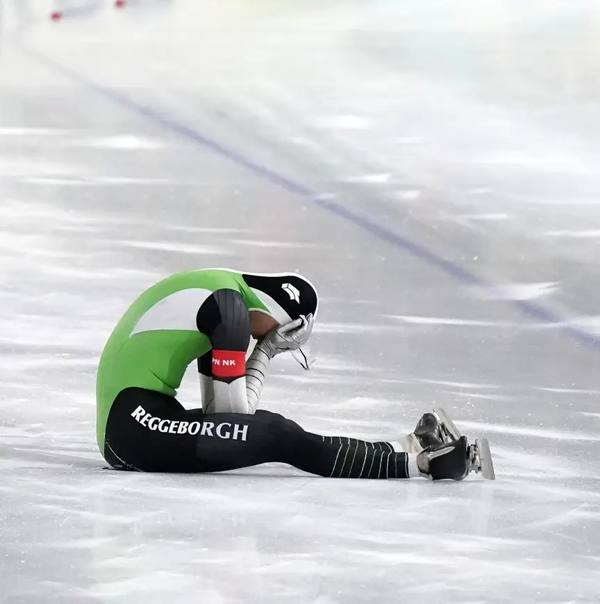 Een paar races voor zijn eigen start had de schaatser van Team Reggeborgh zijn grootste concurrent Kjeld Nuis net als een dag eerder 35,4 zien noteren. Geen tijd om heel nerveus van te worden. “Het enige wat ik toen dacht was: als ik hier 34,4 tegenover zet is het onmogelijk voor hem om het klassement te winnen”, begint Mulder teneergeslagen.