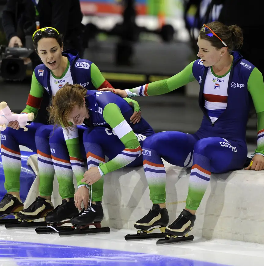 Wüst heeft de bewuste 'duim omlaag' van coach Kuiper niet meegekregen. “Ik heb niet echt de indruk gekregen dat het niet bij elkaar zat”, zegt ze. “In mijn illusie ging het eigenlijk wel goed. Een vol Thialf is natuurlijk kicken, maar er is niet goed te communiceren met zoveel geluid.”