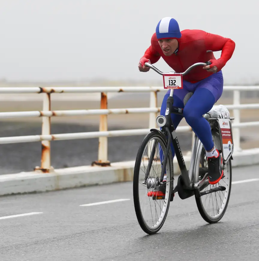 Na 8,5 kilometer stampen finisht hij in een tijd van 22.30 minuten. Genoeg voor de overwinning. “De langzaamste winnende tijd van alle edities, haha. Maar dat had te maken met de zware omstandigheden en daardoor is het natuurlijk wel een heroïsche overwinning geworden. Daarna heb ik nog twee keer meegedaan, maar winnen zat er toen niet in. Ik eindigde als vijfde en als tweede. Al met al een mooi rijtje, toch? “Bij een volgende editie hoopt Sweere wederom aan de start te staan. “Het is een heel populair evenement. Er mogen maximaal 200 deelnemers aan meedoen en zodra de inschrijving is geopend is het binnen no-time ‘uitverkocht’. Als oud-winnaar heb je gelukkig altijd de mogelijkheid om mee te doen. Als ik op feestjes kom beginnen mensen wel eens tegen mij te praten. ‘Jij bent toch ooit Nederlands kampioen Tegenwindfietsen geworden?’ vragen ze dan. Dat is wel grappig, maar ik hoef nog geen handtekeningen uit te delen hoor. En de fotografen liggen helaas ook nog niet voor mijn deur”, vertelt hij met een knipoog.