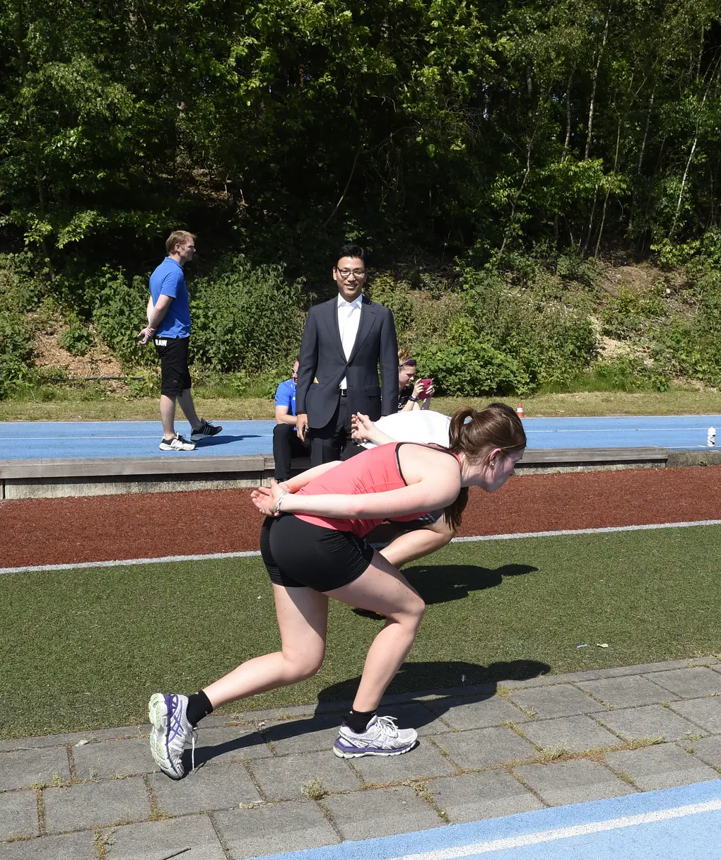 Een van de mannen is Jeayoul Kim, voorzitter van de Zuid-Koreaanse schaatsunie ZKU. Hij ziet hoe junioren uit zijn land gezamenlijk schaatssprongen doen met Nederlandse junioren. Het is een van de eerste duidelijke voorbeelden van de samenwerking die de ZKU en de KNSB in november bij een handelsmissie onder toeziend oog van Koning Willem-Alexander en Koningin Maxima zijn aangegaan.