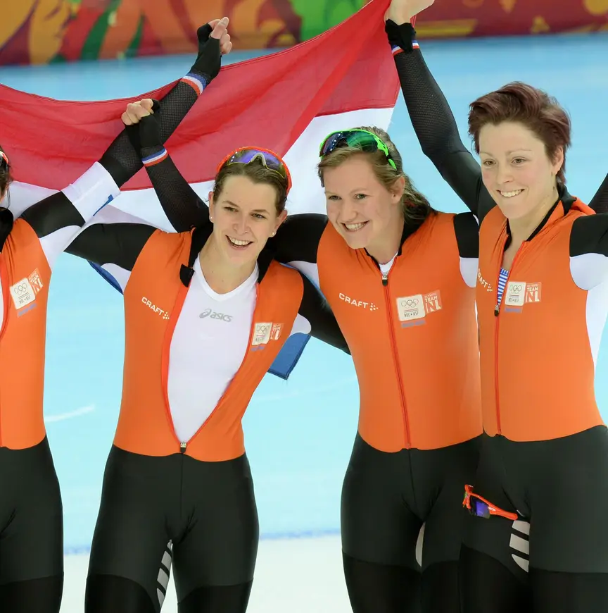 Na de teleurstellende zesde plaatsen in Turijn en Vancouver waren Ireen Wüst, Jorien ter Mors en Marrit Leenstra in Sotsji in een olympisch record van 2.58,05 wel de nummer een. Ook Lotte van Beek, die de kwartfinale reed in plaats van Leenstra, krijgt een medaille.