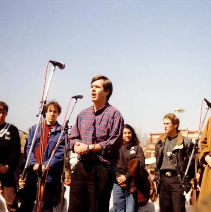 In het verpauperde hart van de stad wordt het Nederlandse gezelschap welkom geheten door een geëmotioneerde burgemeester. “We moeten mee naar de bibliotheek die tot voor het uitbreken van de oorlog de parel van Sarajevo is geweest. Er is niets meer van over, alle mooie dingen zijn vernield en geplunderd. Daarna rijden we naar de ijsbaan. De mensen lopen als verdoofd voorbij, zonder enige uitdrukking op hun gezicht, ’t is alsof de ellende alle geloof en hoop heeft doen verdwijnen. Tot ons gezelschap behoort ook zangeres Lenny Kuhr die een mooi lied heeft ingestudeerd en dat ten gehore brengt.”