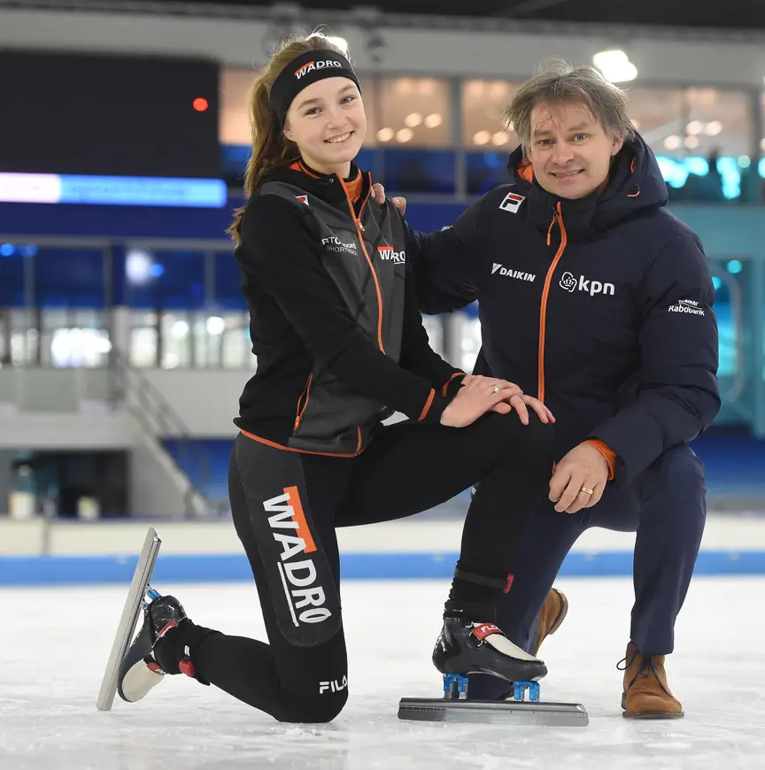 Anne Floor blikt met een gouden medaille op een 1500 meter tijdens de StarClass en selectie voor het WK junioren terug op een succesvol seizoen. Jeroen, die vaak met zijn eigen ploeg onderweg is als zijn dochter moet schaatsen, herinnert zich nog een ander mooi moment. "Wij zaten op een World Cup in Italië en keken in een lange pauze de livestream 300 kilometer verderop. Ze werd toen gediskwalificeerd op een 1000 meter. Als je het mij vraagt was dat omdat ze alleen voor goud ging. Ze zocht de grens op. Dat is iets wat je op deze leeftijd echt moet doen, en af en toe ga je er dan overheen. Dat zijn voor mij de mooiste momenten, maar ook dat ze een WK junioren haalt natuurlijk."
