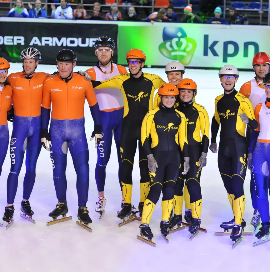 Jan Hoogeveen, wereldkampioen op de aflossing in 1989 met onder andere bondscoach Jeroen Otter, trok speciaal voor deze race zijn wedstrijdschaatsen van destijds aan. "Nog gebouwd door Jeroen", vertelt hij voor de race. "Laatst met training geven heb ik wel even meegedaan met het inrijden. Het gevoel blijft. Wel gevaarlijk hoor. In gedachten heb je de actie al gedaan, maar je benen volgen niet."