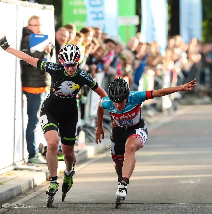 Met de armen verontwaardigd ten hemel geheven rolde De Vries achter Schouten over de streep. De ingreep van de jury liet echter niet lang op zich wachten. Schouten werd gedeclasseerd naar plaats twee, de winst ging naar De Vries. Terecht, vond de rijdster van KeepMoving. ’’Ik kwam met meer snelheid van achteren en dan voel je dat je er langs gaat. Maar dat kon dus niet omdat Irene van haar lijn week.’’
