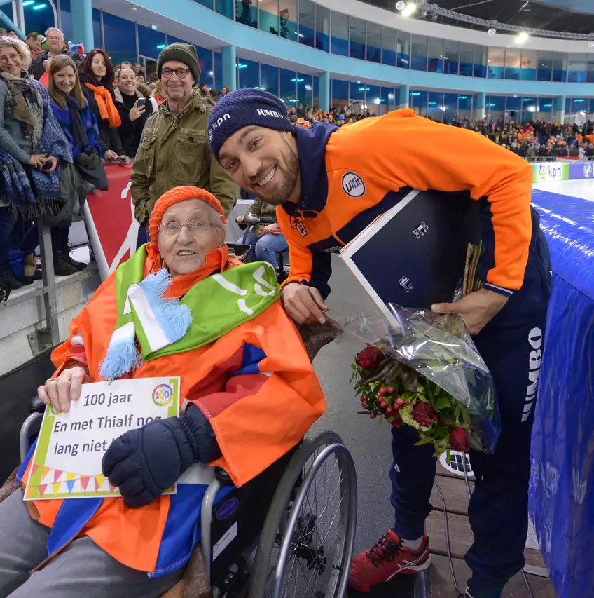 De bewoonster van zorgcentrum De Lijwiekstee in Noordbroek was onder meer te zien in het tv programma 100 Jaar JongĀ met Gordon, met wie ze vorig jaar een bezoek bracht aan ijsstadion Thialf in Heerenveen. Hier trof ze Kjeld Nuis, een van haar favoriete schaatsers, die haar in een rolstoel rond reed over het ijs.