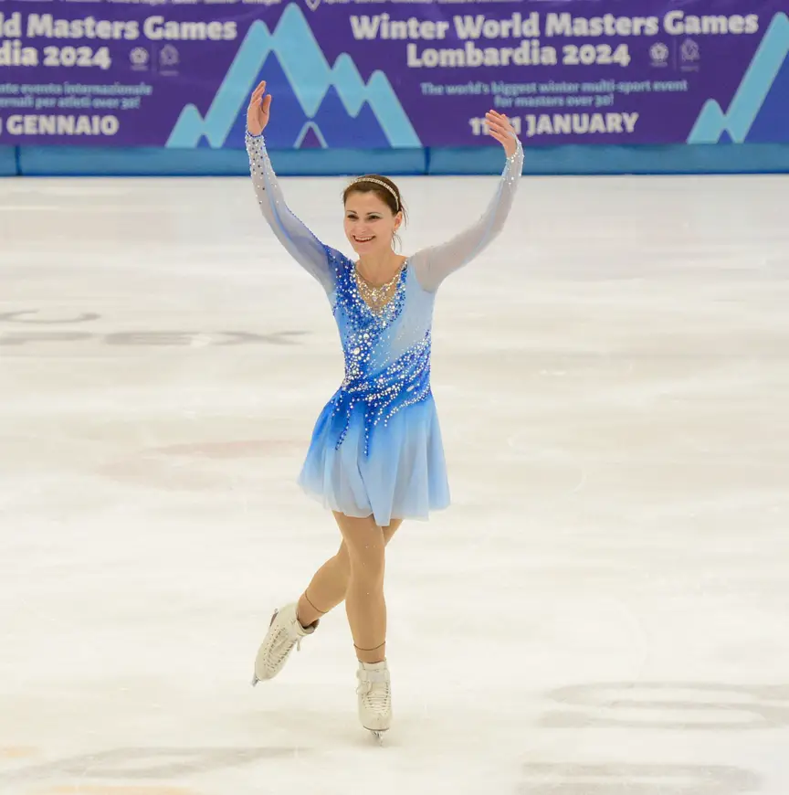 We waren in Lombardije om verslag te doen van de Winterspelen voor Masters, sporters van 30 jaar en ouder. Bij dat evenement waren 67 langebaanschaatsers en 9 shorttrackers uit Nederland actief, die samen een giga-partij medailles wonnen. Bij het kunstschaatsen was dat anders. Op de deelnemerslijst, met onder meer grote delegaties uit Mexico en Australië, stond welgeteld één naam van een kunstschaatsster uit NED. Dat bleek Nicole Stelea te zijn, een Nederlandse van Roemeense komaf.
