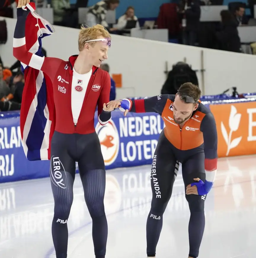 Er was meer. Kongshaug schetste de problemen waarmee de Noren aan het begin van het seizoen te kampen kregen, toen door technische problemen de ijsbanen van Stavanger en Hamar onklaar raakten. De nationale ploeg week in september 2023 noodgedwongen uit naar Thialf, om kennelijk in een situatie verzeild te raken waar trainen moest gebeuren tussen kinderen die nooit op de snelle baan hadden geschaatst. “Bovendien kregen we trainingsuren toegewezen op onmogelijke tijdstippen, zoals 6.30 uur in de ochtend, en mochten we geen hometrainers in het krachthonk gebruiken omdat die voor de Nederlandse topteams waren bestemd. Ik vind dat een beetje vreemd. Wat wil iedereen? Een topcompetitie met kansen voor alle landen, niet dat de fans in Thialf al voor de start van de wedstrijden hun muts of petten afdoen om mee te zingen met het Wilhelmus. Daarom hoop ik dat men nadenkt over de meningen van de topploegen en hun schaatsers.”