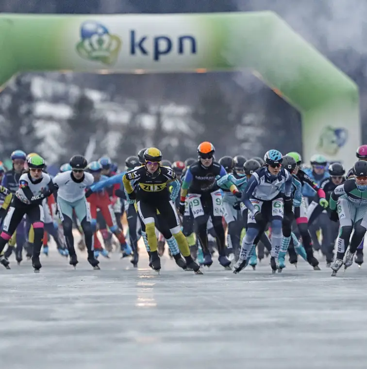 In de echte Elfstedentocht ligt dat anders, vervolgt Hoogeveen. "Daar heeft zo'n start een reden, namelijk dat je anders met tweehonderd wedstrijdschaatsers het donker in vliegt. Hier is die noodzaak niet aanwezig. En de wedstrijd op zich is al spectaculair genoeg. Pak vorig jaar, met de val van Elma de Vries, de winst van Crispijn Ariëns en de hele eindfase van de wedstrijd. Dat was prachtig drama." En dan lachend: "Aan één kant vind het eigenlijk wel jammer. Ik had er net een column over geschreven."