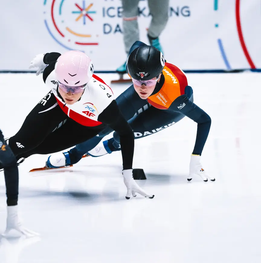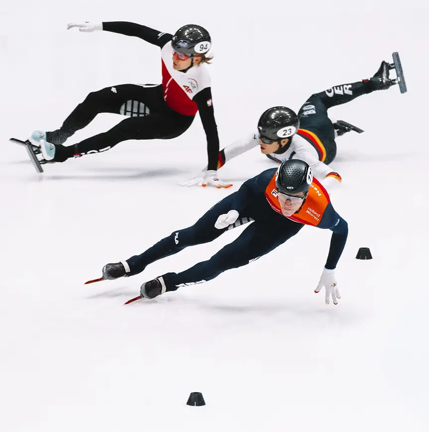 Plankenkoorts? Wat is dat?”, riep Kay Huisman grijnzend van oor tot oor. “Nee, niet echt”, liet hij er op volgen, “al was de eerste rit spannend.” Hij mag dan nieuw zijn in het wereldbekercircuit van de shorttrackers, maar gekeken naar de races die hij op het ijs van de Maurice-Richard Arena in Montréal legde tijdens de kwalificatiedag van het toernooi, was het niet alleen Westlandse bravoure waarmee hij zijn debuut opluisterde. In de voorronde op de 1000 meter was het een soort streep die hij trok, zoals straaljagers die achterlaten wanneer ze in de lucht voorbijflitsen. Weg demarreren van de startlijn, de koppositie innemen en niemand meer de kans gunnen er nog langs te komen.