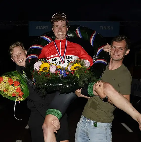 Wie er al wel zijn aangeschoven: Gary Hekman, Roy Boeve, de net genoemde Marijke Groenewoud, Jorrit Bergsma. Op het moment van dit interview hebben de vier er geen weet van dat in de eerstvolgende podcast de Belgische olympisch kampioen mass start Bart Swings te gast zal zijn. Dat anderhalf uur durende onderhoud is meer dan de moeite waard om te beluisteren (hier is de link). Hoewel de mannen trachten op de schaal van improviseren steeds zo hoog mogelijk te scoren, zoeken ze ook naar iets meer structuur. “Maar daar is met name Jurrian goed in”, verzekert Van der Horst. “Als het maar niet te punctueel wordt en we teksten moeten oplezen. Gerwin schrijft een intro dat hij dan opleest, wij gaan er vervolgens blanco in, het liefst zonder een onderwerp vooraf te hebben doorgenomen. Anders wordt het veel minder leuk om te vertellen.”