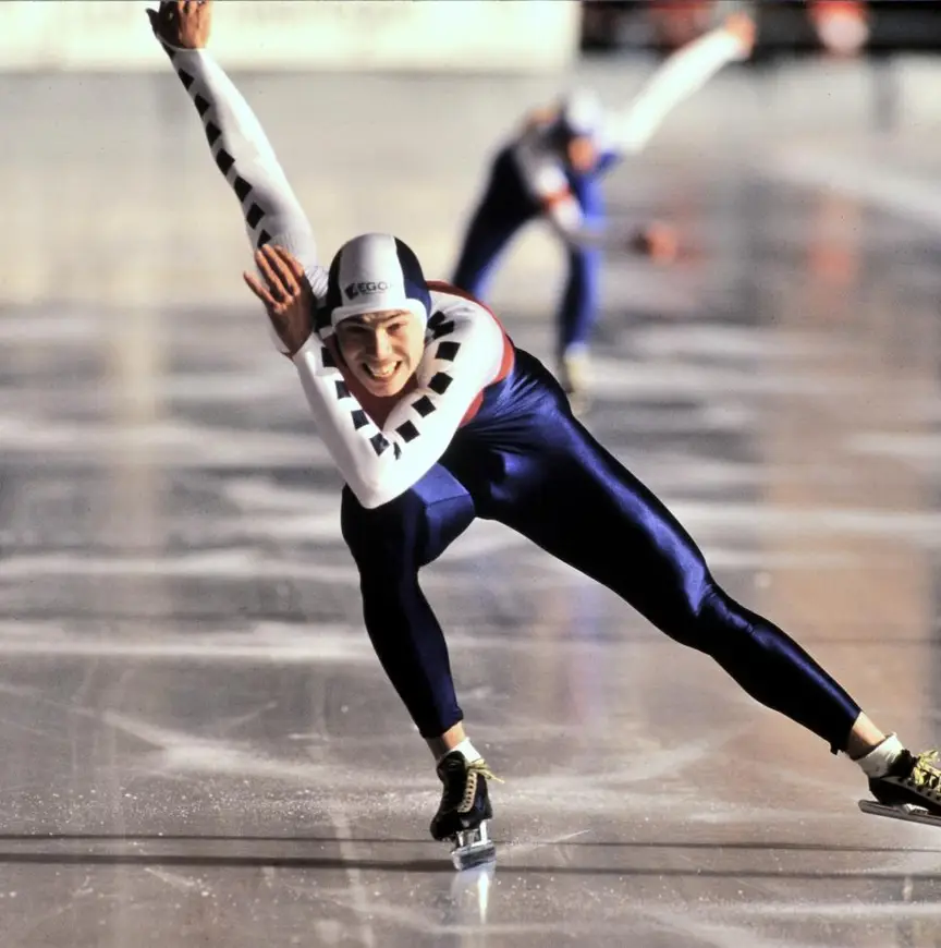 Kampioen worden was leuk, maar Van Velde besloot er extra glans aan te geven. ‘Ik wilde voor het baanrecord gaan op de tweede 500 meter. Nam te veel risico en viel in de binnenbocht. Anders was ik zeven keer Nederlands kampioen geweest…’, zo tikt hij in een app-berichtje over de verkeerde afloop. Dat hij ook de tweede dag in orde was tijdens dat kampioenschap, maakt de tijd op zijn tweede 1000 meter duidelijk. Met 1.14,94 liet hij kampioen Van der Vlies ‘mijlenver’ achter zich (1.16,00).