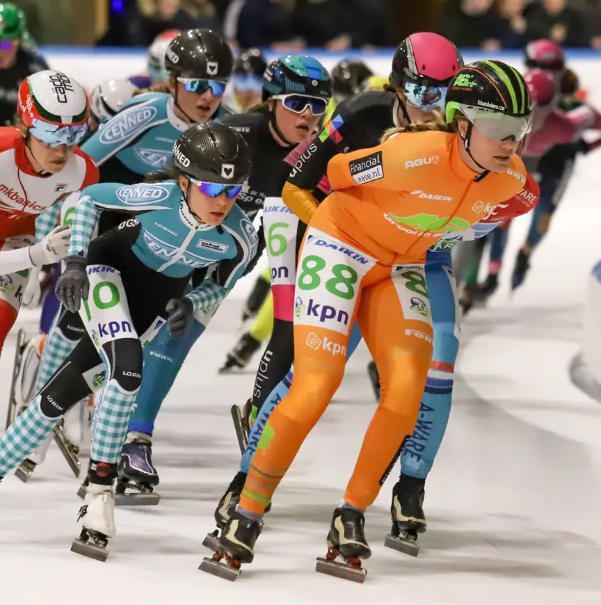 Om snelheid op te doen rijdt Kamminga op het ijs één keer per week achter de mannen van Team AB Vakwerk aan, en na ook nog een ijstraining met haar eigen team is het daarnaast vooral 'gezellig koersen'. Zonder druk, benadrukt Kamminga, die toch al snel in het oranje leiderspak terechtkwam. "Dat helpt dan natuurlijk ook niet echt, qua druk. Je wilt het voor je team en jezelf dan toch meteen goed doen."