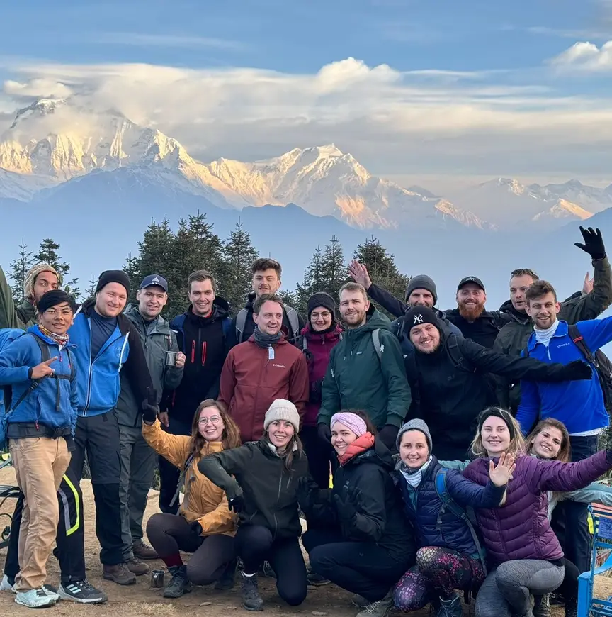 Nepal is jaarlijks voor duizenden toeristen een populaire bestemming om de Mount Everest of een van de andere bergen in de Himalaya te beklimmen. Van de tien hoogste bergen ter wereld, liggen er acht helemaal of gedeeltelijk in Nepal. “We hebben veel cultuur gezien, de hoofdstad Kathmandu bezocht en zijn naar een natuurpark geweest”, vertelt Stoltenborg. “Verder was het veel hiken. Ik denk dat we ongeveer een week van de totale vakantie gelopen hebben, zo’n twaalf kilometer per dag.” Normaal gesproken is dat voor de getrainde hiker wel te doen, op hoogte is de inspanning echter een stuk groter. “We zijn niet op extreme hoogte geweest. Dat gaat met zo’n groep niet en moet je oppassen voor hoogteziekte als je te snel stijgt. We zijn tot 3200 meter gekomen. Dat is voor Nepal relatief laag, maar voor Europese begrippen heel hoog. We hadden ook prima naar 5000 meter hoogte gekund, maar daar was deze reis niet naar. En dat was prim. Het was intensief genoeg en we hebben de pieken van de 8000'ers gezien.”