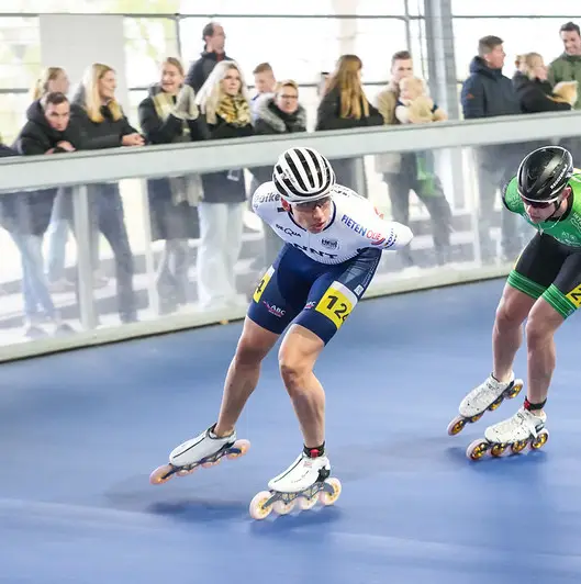“Alles wat ik nu win is mooi meegenomen. Ik moet niet bij de pakken neerzitten of denken dat het dom was dat ik deze keuze heb gemaakt, indien het dit weekend niet helemaal naar wens verloopt. Een paar goede resultaten zou een leuke bevestiging vormen. Wat ik heb gedaan is een gok. Je moet ook dingen doen waar je blij van wordt en ik ben heel blij over de afgelopen periode en de opgedane ervaring. De Italiaanse coaches constateren in elk geval dat ik vooruit ben gegaan. Ze kennen de Nederlandse skeelerwereld niet goed. Ze kunnen me alleen vergelijken met Duccio. Ik word beter, maar hij ook, haha. De onderlinge verhoudingen blijven redelijk hetzelfde. Het is aan mij het gat de laatste paar weken voor het EK te verkleinen. Ik geloof niet dat hij al bang van me wordt hoor. Hij is vooral blij met me, omdat we samen prachtige trainingen hebben. En veel lol. Dat is ook belangrijk.”