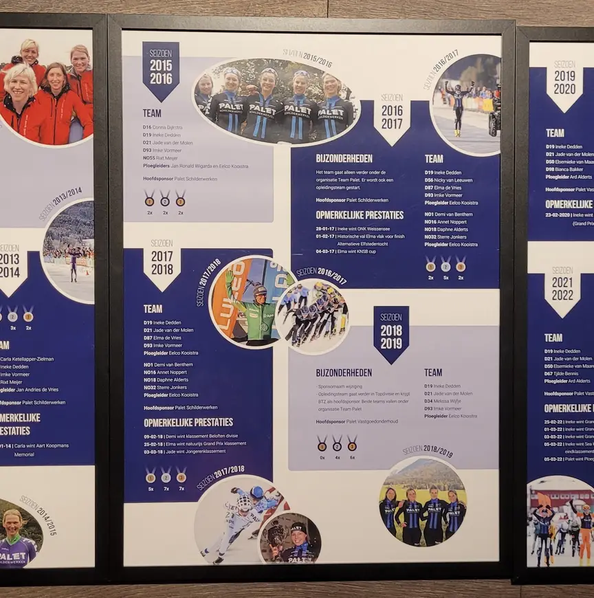“Wij hebben veel media-aandacht gekregen met vallen”, legt Jan Pleijsier, directeur van Palet Vastgoedonderhoud, uit. “De beelden van Elma gingen de wereld over en Rixt Meijer is ooit Nederlands kampioen geworden op de marathon op kunstijs, door een valpartij van Lisanne Soemantha. Wij gebruiken deze voorbeelden van omgaan met tegenslagen in onze bedrijfspresentaties. We nemen hierin ook zeker het vieren van overwinningen mee.”