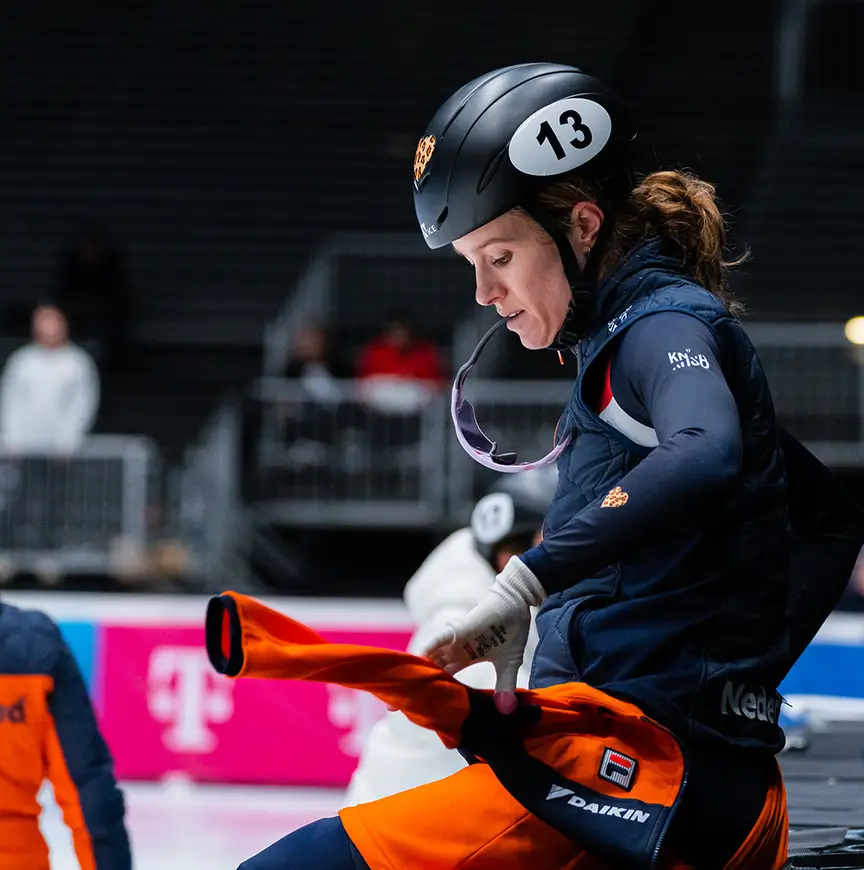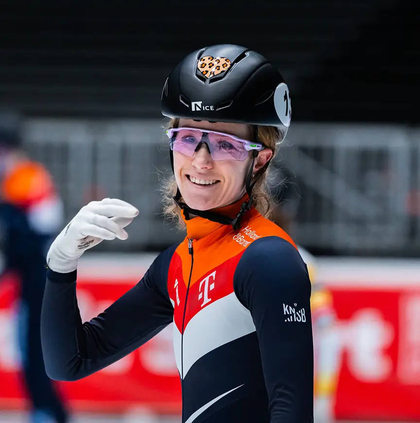 Een maandje later stond ze in een bomvol Ahoy bovenop de boarding de relaymannen naar de wereldtitel te schreeuwen, kort nadat hun eigen WK-finale op de relay in duigen was gevallen. “Wij baalden nog van onze eigen race, waren vol emotie. De mannen maakten het goed, zij wonnen goud en het publiek ging uit zijn dak. Dat was zo bijzonder! Ik heb bij TeamNL de groei meegemaakt van onderaf tot aan de wereldtop. Dit voelde ook echt als een teamprestatie.”