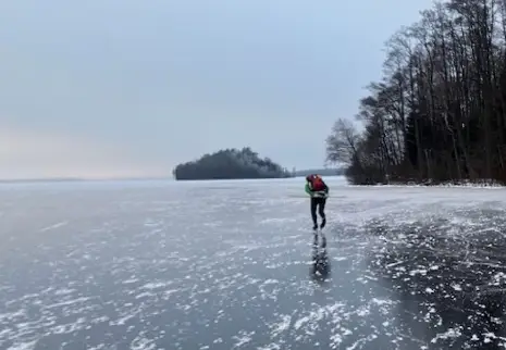 Het is dé manier voor Van Kempen om Zweden te ontdekken. Hij woont vlakbij twee meren, de Une en het Bolmen, de laatste behoort tot de tien grootste van het land met een oppervlakte die vergelijkbaar is met het IJsselmeer. “Begint het te vriezen, dan leg ik het (timmer)werk neer en ga ik erop schaatsen. Het liefst elke dag, en minimaal honderd kilometer per keer. Deze winter”, zo checkt hij even snel op zijn telefoon, “was het 17 november de eerste dag waarop ik ben gaan schaatsen. In het weekend maak ik tochten met een Zweedse maat, Pierre Schmidt, een voormalige professionele triatleet. Ik ben door andere schaatsvrienden aan hem gekoppeld via een internetsite waarop zo’n drieduizend Zweedse (toer)schaatsers hun informatie over natuurijs delen, over begaanbaar ijs, bijzondere plekken etcetera.