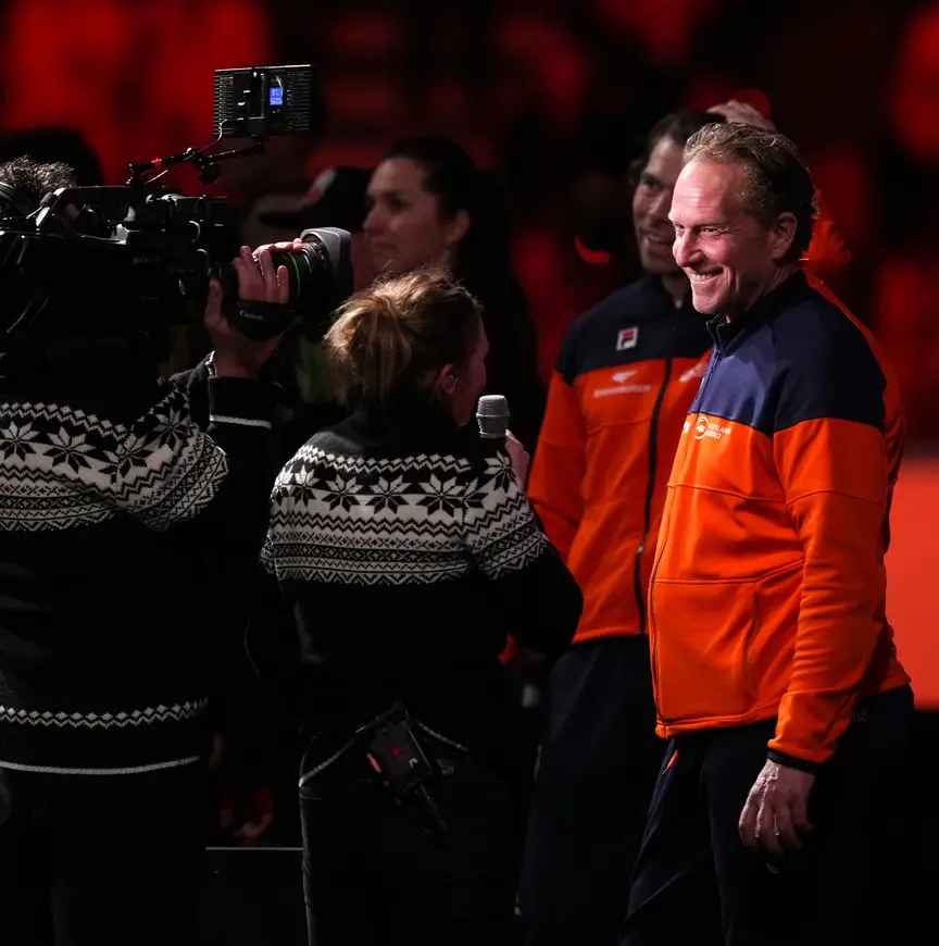 Gelukkig hoefde hij niet de rest van de vrijdagavond over het verschoven sokje van Joy Beune en de daaropvolgende diskwalificatie te praten. Na de tranenregen die het verlies van goud voor de achtervolgingsvrouwen veroorzaakte, had Rintje Ritsma ook weer reden om de strakke blik op zijn gezicht in te wisselen voor de grijns van een kampioen. Zijn mannen Patrick Roest, Marcel Bosker en Beau Snellink verjoegen het chagrijn met de wereldtitel. De Friese baas liet er bescheiden bij optekenen dat zijn aandeel niet zo groot was. “Ik zet slechts de poppetjes op hun plaats. Voor de uitslag zorgen de rijders en rijdsters. Ik ben niet belangrijk”, sprak hij op rustige toon in zijn nabeschouwing op de altijd intrigerende teamwedstrijd.