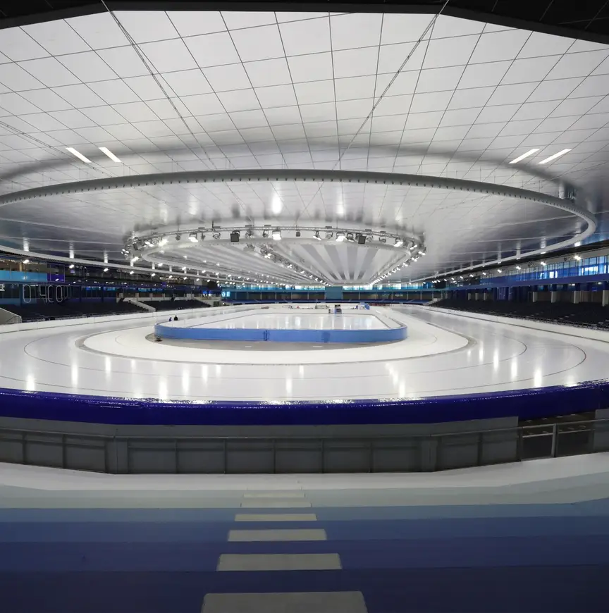 De 400-meterbaan heeft daarnaast een uniek koelsysteem gekregen, wat nergens anders ter wereld bestaat. De bron van het water voor ijs ligt op eigen bodem en de baan zelf is in zes secties opgedeeld. De rechte stukken en de binnen- en buitenbochten. "Tijdens een sprinttoernooi kunnen we er dan bijvoorbeeld voor kiezen om graden aan te passen. Als we de uitgaande bochten net iets zachter maken hebben rijders daar meer grip."