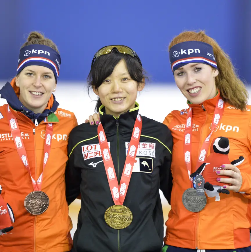 Miho Takagi won eerder op de dag de 3000 meter bij de vrouwen. De Japanse noteerde een tijd van 3.57,09. De Japanse zette daarmee een nationaal record neer. De Jong eindigde in een nieuw persoonlijk record als tweede, Wüst werd derde.