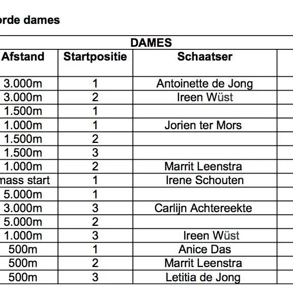 Toch is alleen de nummer twee op deze afstand, Marrit Leenstra (38,52), al officieel zeker van haar olympische ticket op deze afstand. Dat komt omdat Leenstra zich eerder in het toernooi al plaatste op de 1000 meter, de 500 meter staat in tegenstelling tot die afstand laag in de selectievolgorde.