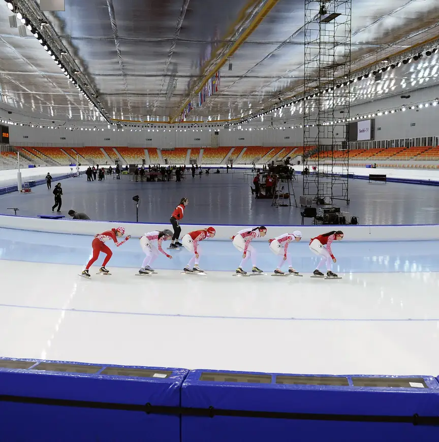 Ook Jan van Veen had graag met zijn rijders al vorige week op de Russische baan gestaan. "We waren hier al graag eerder geweest. En het is zeker gek dat we niet welkom waren, maar het mag volgens de regels. Pas drie dagen van tevoren hoeft het ijs vrijgegeven te worden."