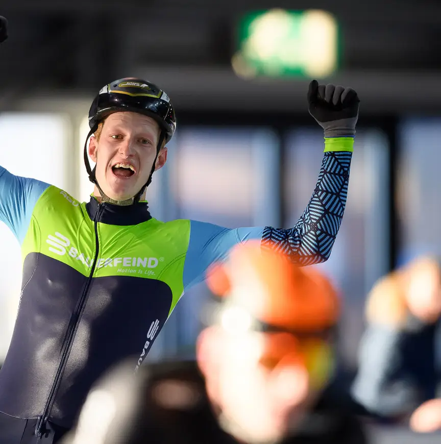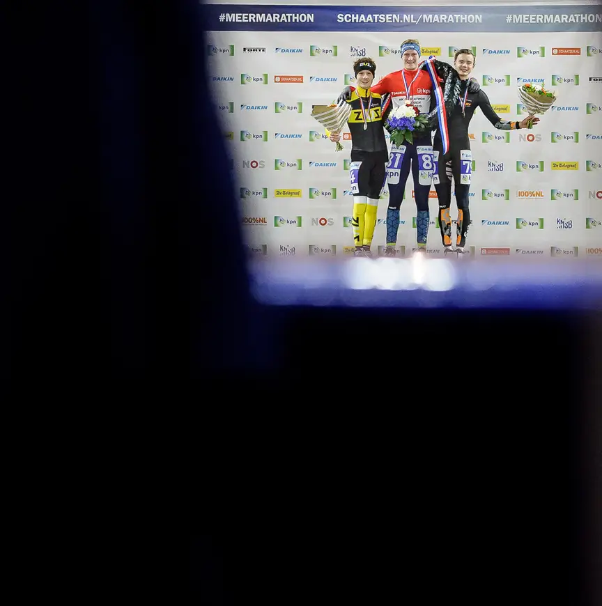 "Dit is mijn allersterkste wedstrijd ooit geweest", glundert Slagter, terwijl hij zijn zoveelste felicitatie in ontvangst neemt. "Het mooiste aan vandaag is dat ik echt de sterkste was. Je rijdt ook weleens podium terwijl je met je tong op het ijs lag en dat voelt toch minder goed."