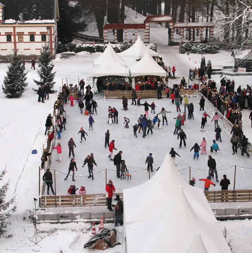 Het Stallenplein is sfeervol aangekleed met een echte ijsbaan, die mede mogelijk is gemaakt door IJSTIJD!. Schaatsen kunnen ter plekke worden geleend, maar de baan is niet geschikt voor noren. In de Koetshuizen worden diverse sleden uitgestald, met de bijbehorende aanspanningen van paarden en koetsiers, zoals gebruikt door de Oranjes.