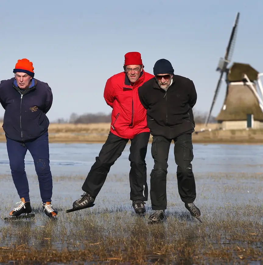 Het ijs was volgens de Friese schaatsliefhebber, die de schaatsen onderbindt zodra het maar even kan, best stevig. "Het was zo'n drie centimeter dik. Ik heb geprobeerd om er een gat in te stampen, maar dat was nog best moeilijk. Uiteindelijk is het met wat hulp van anderen gelukt.''