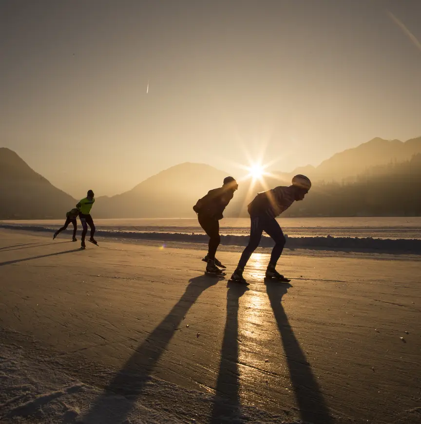 In dit deel van Oostenrijk liggen nog veel meer mooie meren in de dalen tussen de bergen en heuvels van het fraai glooiende landschap. De Weissensee is er slechts één van, al wordt het in de winter wel de grootste natuurlijk ijsvlakte van het land en is het ook het meest hoog gelegen meer. Over het algemeen ligt er ijs van half december tot half maart. Dan worden er ook wedstrijdbanen, recreatieve schaatsbanen en zelfs ijsstokbanen uitgezet op de ijsvloer. Maar de bevroren Wörthersee, Faakersee en Ossiacher See in hetzelfde gebied bieden ook mooi ijs in de winter. Karinthië is dus the place to be voor wie redelijk dicht bij huis op betrouwbaar en kwalitatief goed natuurijs wil schaatsen.