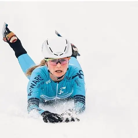 Irene Schouten vierde haar overwinning in Luleå met een fraaie buikschuiver! Daar zouden voetballers nog een lesje van kunnen leren.